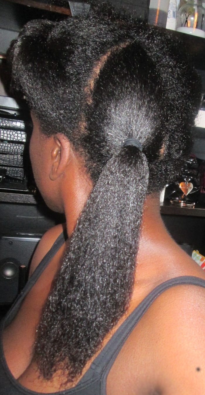 Because I’m 13 weeks post I didn’t want to air dry. To stretch my new growth I sectioned my hair in four ponytails and tuck my ends. With a Denman brush I made sure my hair was smooth. I used a hooded o dry my hair. I sat under the hooded dryer for 1 ½ hour.