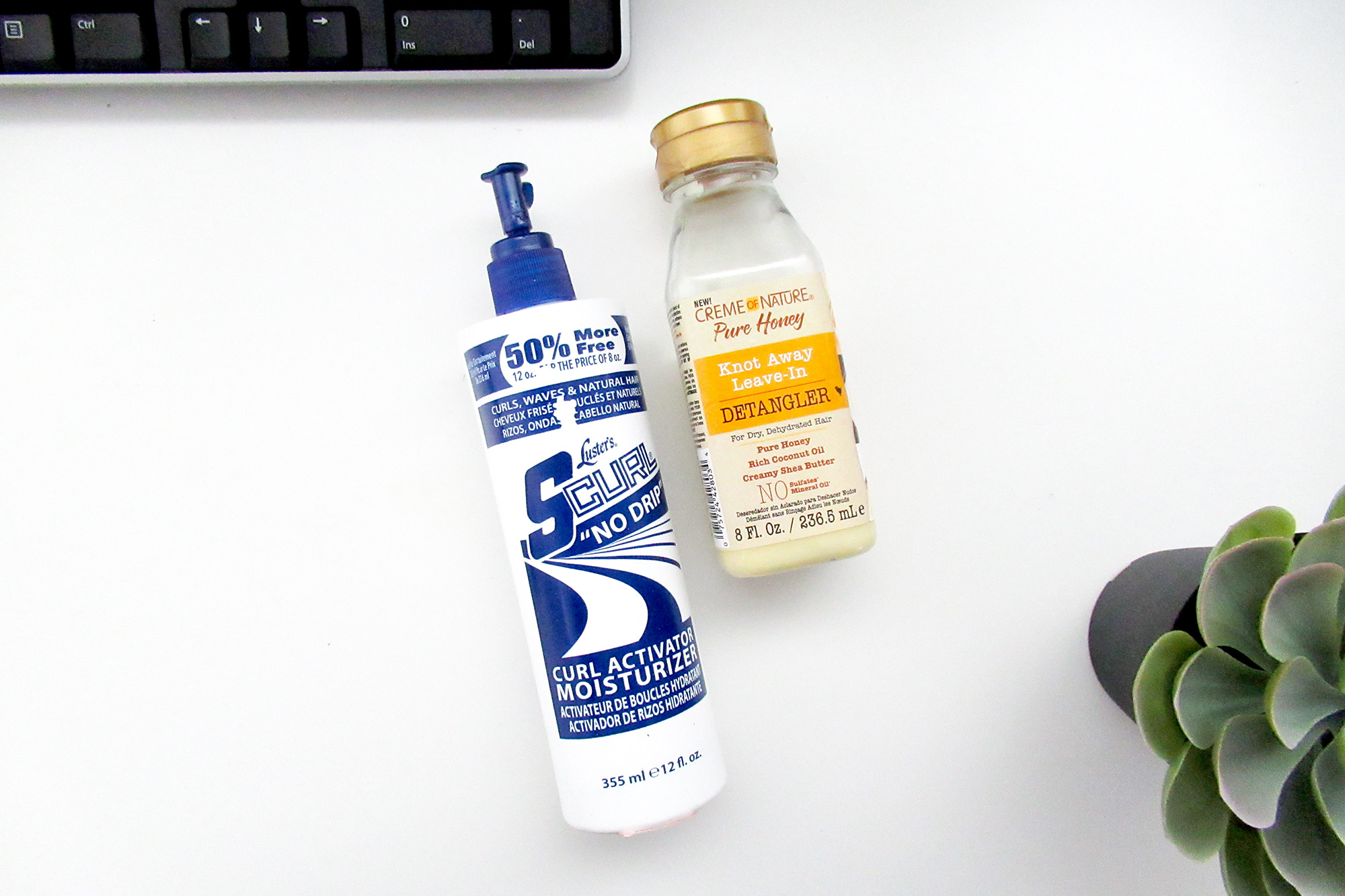 When my hair was towel dried I applied Luster’s S Curl No Drip Activator Moisturizer & Creme of Nature Pure Honey Detangler Leave-in to my hair and let my hair air-dry.
